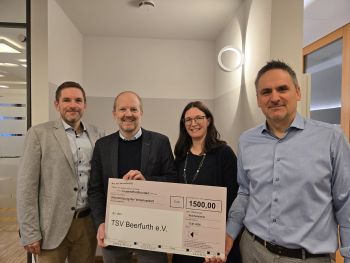 Die Partner der Kanzlei, Christian und Tino Klinger und Eva Hartmann, haben im Januar 2025 einen Spendenscheck in Höhe von € 1.500 an die 1. Vorsitzende und Vereinsgründerin, Frau Jacqueline Wörner, offiziell übergeben.